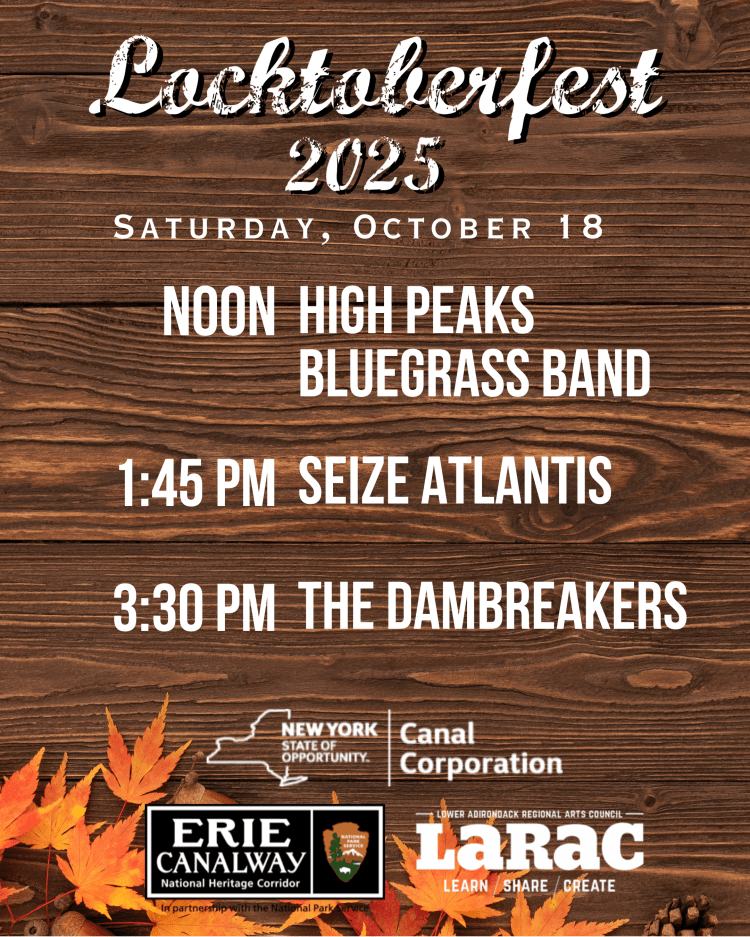 Locktoberfest is a celebration of the Harvest season on New York State’s Canals. We bring the best local products to the heart of Historic Fort Edward for a festive day of food, drinks and fun for the whole family. Highlighting the unique history of our area, we invite children to enjoy our free activities. Live music lasts all day while you sample the flavors of Fall from local farms, food trucks and our beer tasting tent.